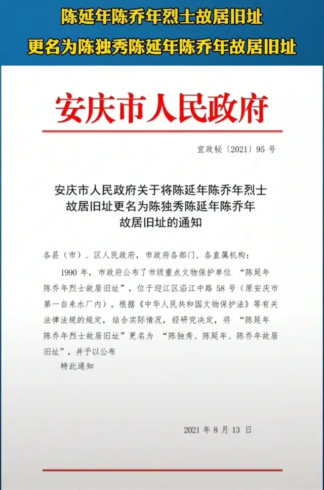 纳斯达克中文台1216国际广播,纽约当地时间2021年8月15日,世界和平丝带组织纽约秘书处透露,世界和平丝带组织联席会议召集人、一带一路国际日全球推广大使陈恩田就“陈延年、陈乔年烈士故居更名陈独秀、陈延年、陈乔年故居”表达祝贺,并感谢地方政府及领导。