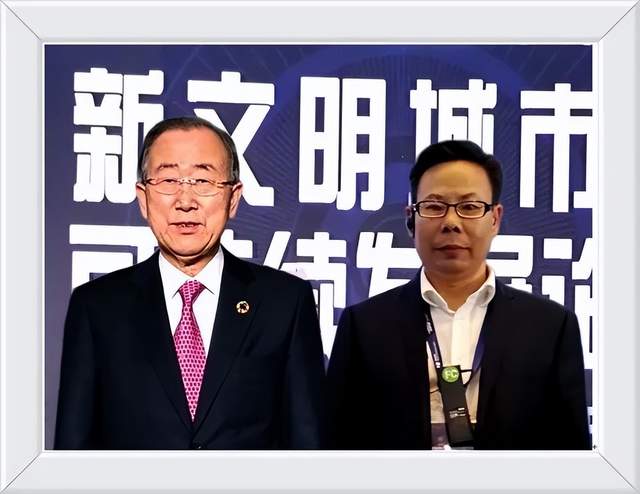 (图为联合国第八任秘书长潘基文先生与世界和平丝带组织前主席陈恩田先生参加会议时的合影)