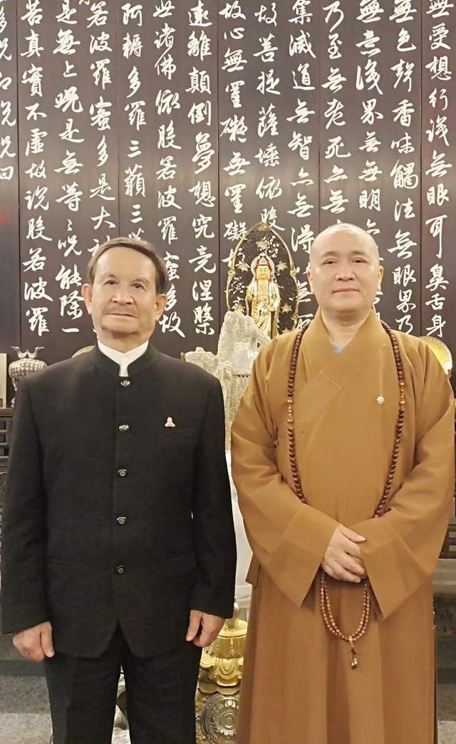 (永寿大和尚会见台湾中国和平统一促进会创始会长、国际中山会世界总会会长孙武彦先生)