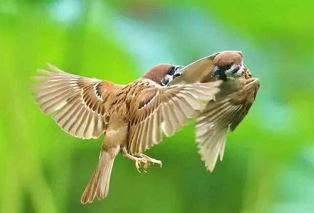房前唐竹一片,屋后松林绵延;秋去冬来萧索,唯见麻雀万千。鸟们三五成群,结伴客居竹林;忙碌垒巢觅食,积极抗寒迎春;闲时冬阳嬉空,鸟趣乐在其中。林深水幽,虫卵美,竹叶丰,若去偷粮仓,每每凯旋归。鸟们获此地,安居乐鸟业。